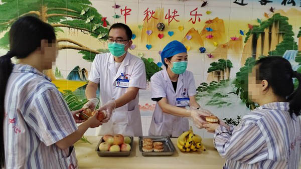 浓情中秋,情满医患。为了让住院患者和家属在医院过一个温馨的中秋节,9月8日、9月9日,医院为每位患者送去了月饼、苹果;医护人员精心准备,在各自病区为患者举办了丰富多彩的娱疗活动,让患者感受到浓浓的节日氛围。