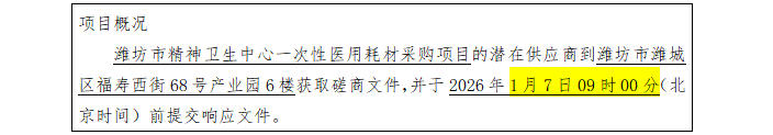 2.项目名称:潍坊市精神卫生中心一次性医用耗材采购项目