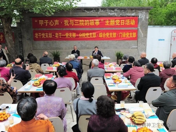 4月21日上午,昌乐院区餐厅院内,梧桐花影婆娑,人声笑意融融。正值医院建院六十周年之际,门诊党支部、分院党支部、老干党支部、老干一党支部、综合党支部联合中西医结合科、老干科共同举办“甲子心声·我与三院的故事”主题党日活动。44位退休老同志与来自各党支部的年轻党员齐聚一堂,共叙医院发展历程,完成了一场跨越代际的文化传承。