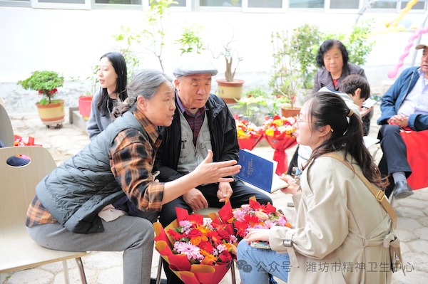 随后进入 “红马扎·面对面”交流环节。年轻党员与各自结对的老同志坐在花坛边、树荫下自由交流。他们认真倾听、仔细记录,在老同志的讲述中感受医院从无到有、由弱变强的艰辛历程。中西医结合科鲁婷婷博士为老同志提供中医面诊服务,现场还发放了中药香包。老同志们拉家常、叙旧情,阳光透过树荫洒在银发与黑发之间,笑声与回忆交织。