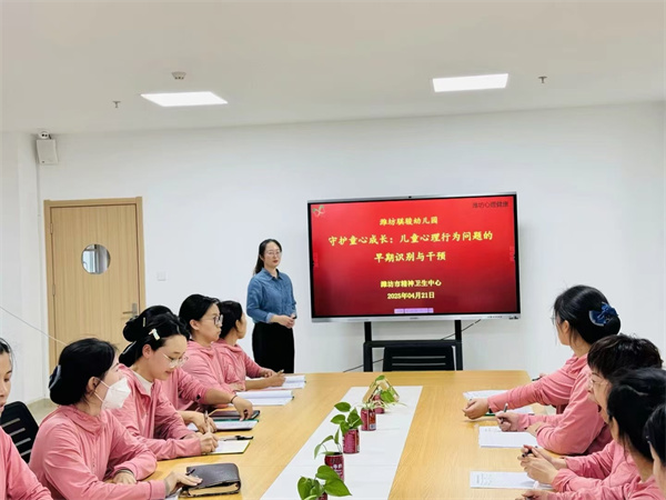 4月21日,医院心理治疗师刘阳走进潍坊高新区骐骏幼儿园,为幼儿园20名教师开展主题为“守护童心成长”的心理健康讲座。