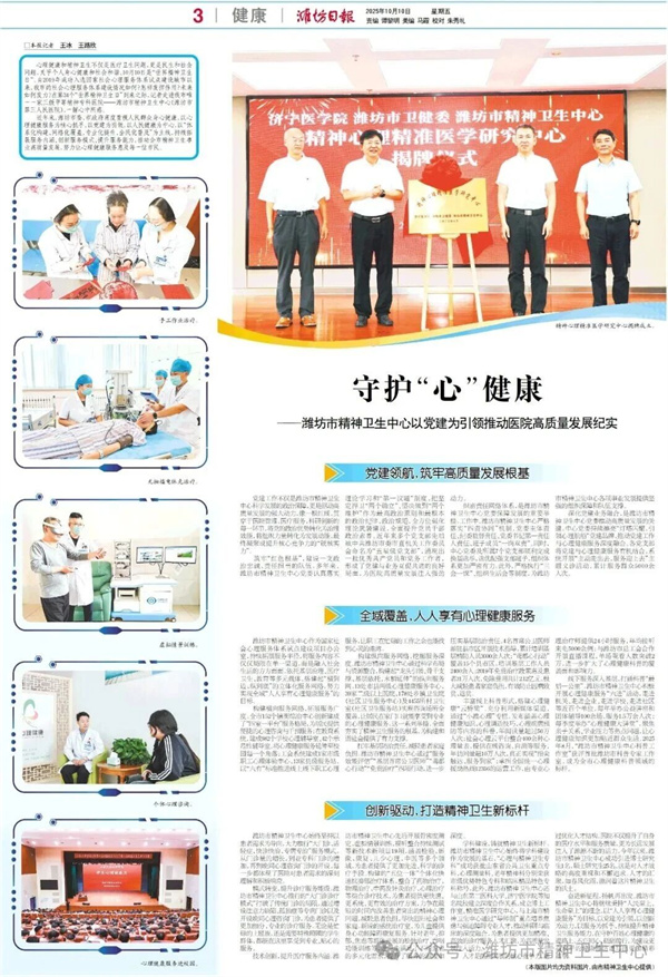 10月10当天,潍坊日报整版刊发《守护“心”健康——潍坊市精神卫生中心以党建为引领推动医院高质量发展纪实》。现予以转发,以飨读者。