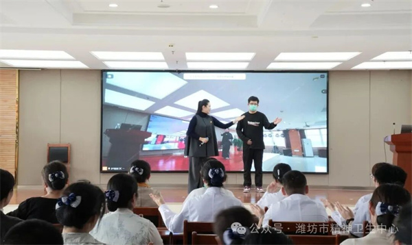 培训现场,陈凤娇老师围绕护理人员职业形象塑造,进行了系统讲解与示范。她从站、坐、行、蹲等基础仪态规范入手,结合与患者床旁沟通、引导家属办理出院手续等常见工作场景,剖析了各项动作要领与表达技巧。并结合护理工作实际,就如何运用亲切的微笑、真诚的目光以及规范的手势,来传递关怀与专业,进行了深入浅出地阐述。参训人员踊跃参与情景模拟与实操演练,在实践中加深对礼仪规范的理解,进一步巩固了学习要点与行为标准。