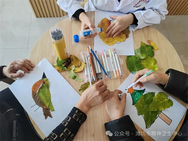 护理人员以落叶为媒,引导患者观察叶脉、感受色彩,在专注创作中安顿心神。“触摸着树叶,听着沙沙声,心里特别安静。”一位患者分享道。原本飘零的落叶,成为抚慰心灵的温柔载体。