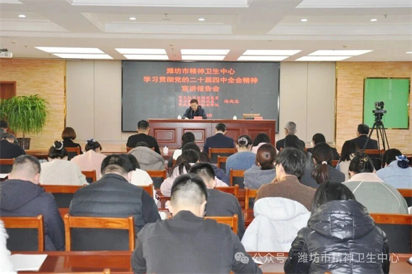 12月18日,潍坊市精神卫生中心举办党的二十届四中全会精神宣讲报告会。市直机关宣讲团成员、市卫健委党组成员、市疾控中心党委书记冯向志作宣讲报告。中心党委书记张功法主持会议,中心党委班子成员、各党支部书记、二级及以上科室负责人和全体党员干部职工参会。