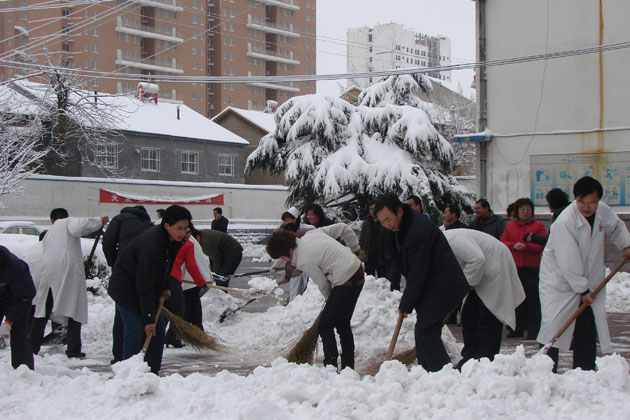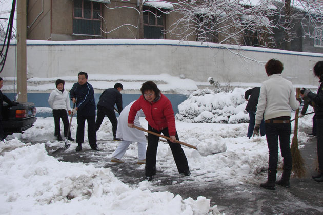 2月28日,一场罕见的大雪,给我们带来丰沛降水和妖娆美景的同时,也对城市交通、生产生活带来诸多不便。3月1日一大早,我院广大干部职工积极行动,努力消除大雪天气产生的不良影响。图为广大干部职工热火朝天扫雪的情景: