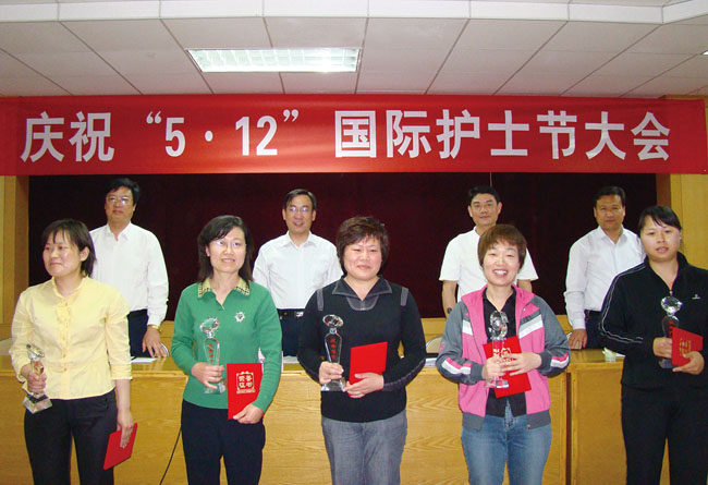 会上,张功法书记宣读了《关于表彰潍坊市优秀护士的通报》和《关于表彰医院优秀护士的通报》;护理部郭玉芳主任传达全市庆祝“5.12”国际护士节暨“优质护理服务示范工程”启动大会精神。伴着激昂奋进的音乐,医院领导分别为潍坊市优秀护士、医院优秀护士颁发了奖杯和证书。